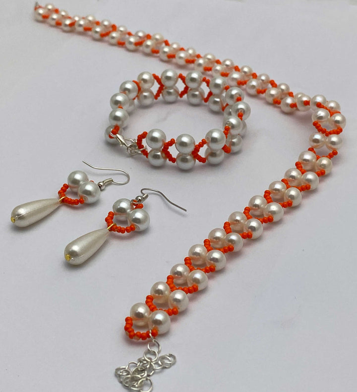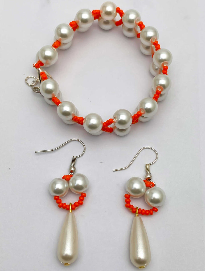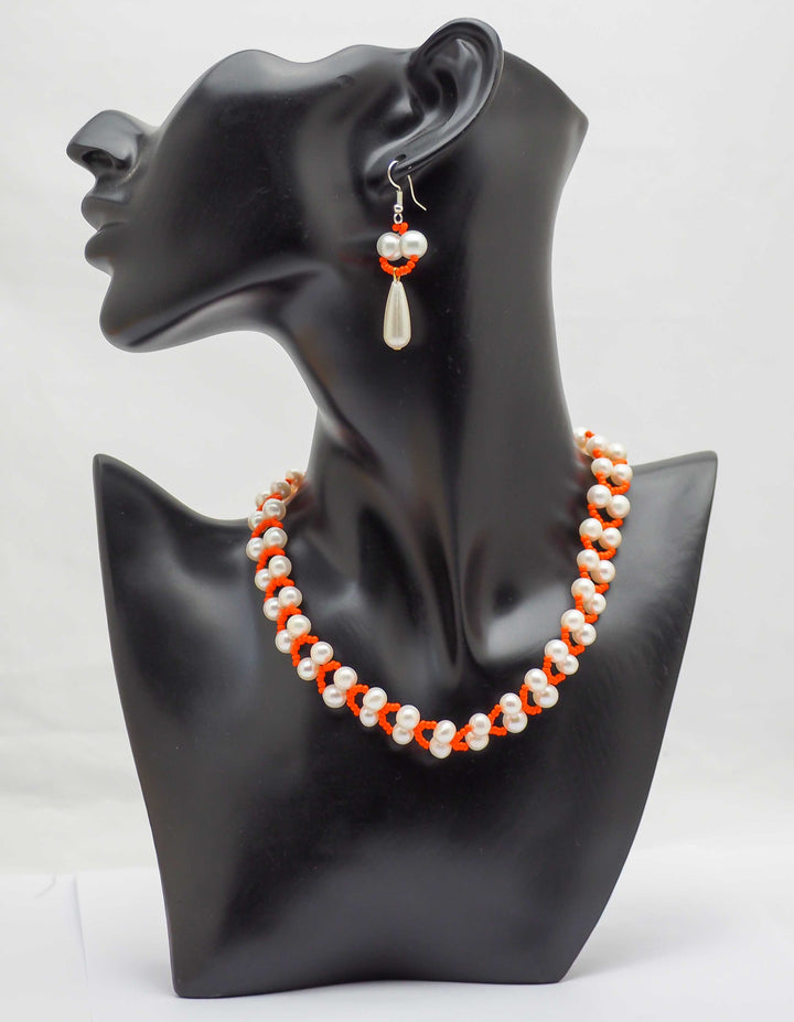 The warm orange beads provide a lively pop of color, while the soft ivory beads bring an elegant touch to the piece. Together, they create a harmony that is both sophisticated and playful. Shop now to enrich your collection with this timeless accessory.